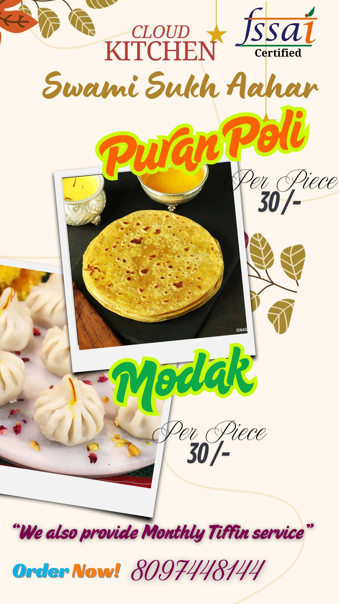 Welcome to Swami Sukh Aahar, your home for authentic Maharashtrian flavors made with love and tradition. Whether you're craving the festive sweetness of Modak or the comforting richness of Puran Poli, we bring you delicious meals that feel like they’re straight from your home kitchen.